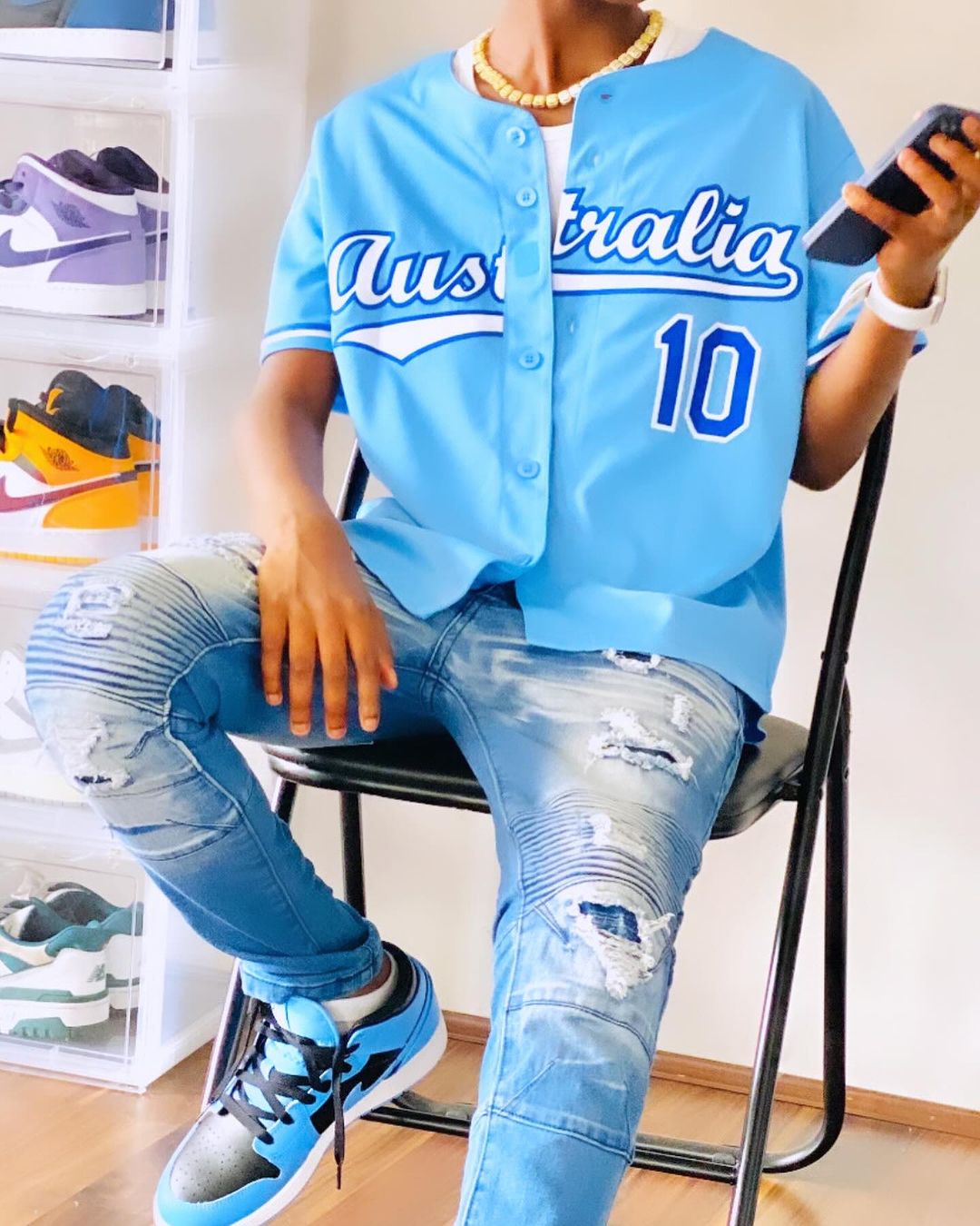 How to match shoes with custom baseball jerseys worn by men attending parties