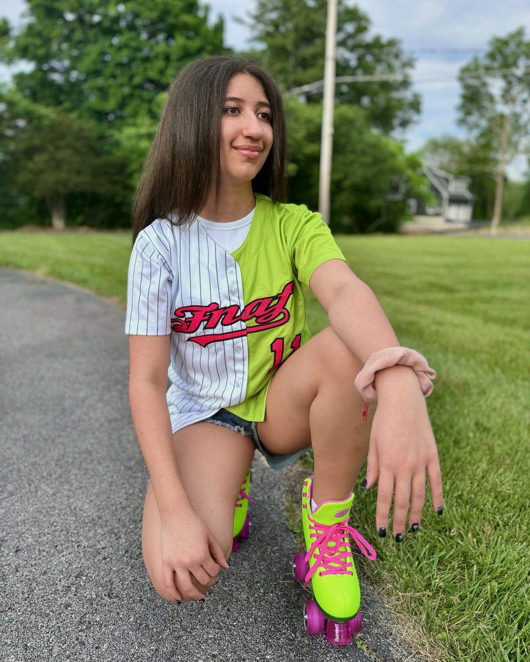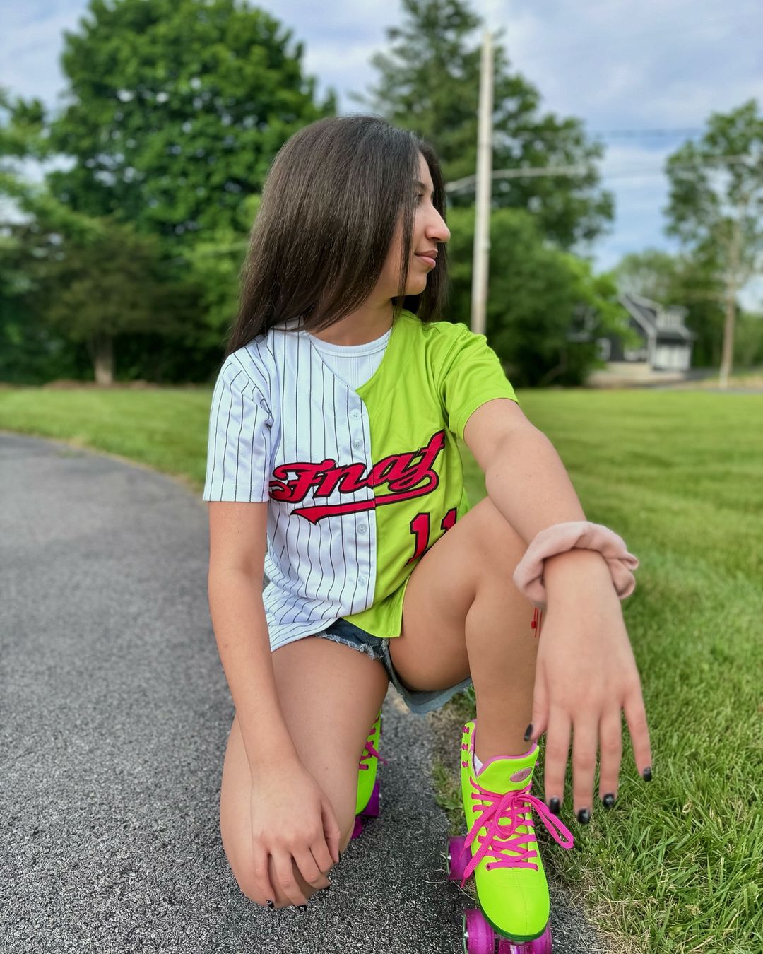 When playing with pulleys on the road, pairing it with a women's custom Split Fashion baseball jersey can showcase a unique and fashionable style. Here are some suggestions to help you create a look that is both suitable for roller sports and full of personality: