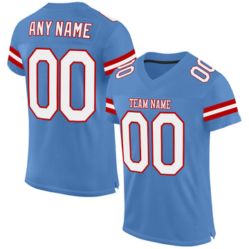 Customized football light blue jerseys are a personalized and practical choice that can be customized according to personal preferences and team needs. Here are some key information about custom football light blue jerseys: Customized content: Customized football jerseys usually include selecting colors, patterns, team badges, numbers, and names. You can design the appearance of the jersey based on the team's logo, game theme, or personal preferences. Fabric selection: The fabric of the jersey is also an important factor to consider when customizing. High quality fabrics can provide better breathability and comfort, ensuring that players can stay dry and comfortable during matches. Size and Pattern: When customizing a football jersey, make sure to choose the appropriate size and pattern to ensure that the jersey fits snugly and is neither too tight nor too loose. Production cycle: Customized jerseys may require a certain production cycle, so it is recommended to plan in advance to ensure that customized jerseys are received on time before matches or events. Customized football light blue jerseys can also showcase a unique style and personality in daily wear. Due to its unique design and rich customization options, custom jerseys can add a unique charm to your daily wear. Here are some suggestions for customizing football light blue jerseys for daily wear: Casual pairing: You can choose to pair custom jerseys with jeans or casual pants to create a relaxed and relaxed casual style. Paired with a comfortable pair of sports or casual shoes, the overall look is both fashionable and practical. Sports style: Customized football light blue jerseys already have a sporty vibe, so you can pair them with sports pants or shorts, and pair them with a pair of sports shoes to create a vibrant sports style. This kind of outfit is very suitable for outdoor activities or fitness wear. Mix and match fashion: Try to mix and match customized football light blue jerseys with other different styles of clothing, such as pairing them with leather shorts or a plaid shirt, to create a unique and fashionable look. This kind of dressing can highlight your personality and creativity. Accessories and embellishments: In daily wear, you can add some accessories to customize football light blue jerseys, such as hats, scarves, bracelets, etc. In short, customized football light blue jerseys are a great way to showcase team characteristics and personal style. By choosing the right fabric, color, and pattern, you can create a unique football light blue jersey that makes players more confident and united in the game. Special Custom Light Blue Football Jerseys: Light Blue Yellow, Light Blue Orange, Light Blue Red, Light Blue Pink, Light Blue White, Light Blue Gold, , , , , , , , ,