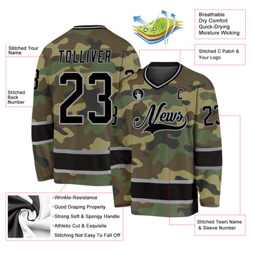 Customized hockey camo jerseys have a wide and diverse range of usage scenarios. Here are some common scenarios and their matching suggestions: Usage scenarios: Formal matches: In ice hockey leagues or tournaments, teams usually wear a unified customized jersey to demonstrate team cohesion and professionalism. These jerseys are usually exquisitely designed, brightly colored, with the team emblem and player names printed on them. Friendship matches and training: In friendship matches or daily training, teams may also wear customized jerseys to facilitate identification between teammates and reflect team spirit. These jerseys may be relatively simple, but they still reflect the team's characteristics. School and club activities: School or club ice hockey teams may also choose custom hockey camo jerseys to showcase their identity and team culture. These jerseys are usually combined with school or club logos to showcase a unique style. Special events: When celebrating specific holidays, anniversaries, or hosting special events, teams may choose custom hockey camo jerseys to highlight the theme and atmosphere of the event. Suggested color matching: The color of the jersey should match the team's logo and theme, while considering the visual effect of the player on the ice, a bright and high contrast color combination can be selected. Accessories and Details: Details such as team emblem, player name, and number can be added to the hockey camo jerseys to highlight the personality of the team and players. Meanwhile, suitable collar, cuffs, and hem designs can be chosen to enhance the aesthetics and comfort of the jersey. Protective gear and equipment: Matching protective gear and equipment with custom hockey jerseys is also crucial. The leg guards, elbows, helmets, etc. should be coordinated with the style of the jersey to form a unified visual effect. Socks and shoes: Players' socks and shoes are also part of their overall attire. You can choose socks that match the color of the jersey, as well as professional ice hockey shoes, to ensure the comfort and safety of players during the game. Accessories and props: In special occasions or events, it is also possible to consider adding some accessories and props, such as scarves, hats, gloves, etc., to increase the richness and fun of the overall design. In short, there are various usage scenarios and flexible matching methods for customizing ice hockey jerseys. The key lies in selecting appropriate colors, details, and accessories based on the characteristics and needs of the team, in order to showcase the unique charm and team spirit of the team. Camo Black, Camo Light Blue, Camo Navy, Camo Orange, Camo Purple, Camo Red, Camo Royal, Camo Vintage USA Flag