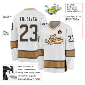 Customized hockey white jerseys have a wide and diverse range of usage scenarios. Here are some common scenarios and their matching suggestions: Usage scenarios: Formal matches: In ice hockey leagues or tournaments, teams usually wear a unified customized jersey to demonstrate team cohesion and professionalism. These jerseys are usually exquisitely designed, brightly colored, with the team emblem and player names printed on them. Friendship matches and training: In friendship matches or daily training, teams may also wear customized jerseys to facilitate identification between teammates and reflect team spirit. These jerseys may be relatively simple, but they still reflect the team's characteristics. School and club activities: School or club ice hockey teams may also choose custom hockey white jerseys to showcase their identity and team culture. These jerseys are usually combined with school or club logos to showcase a unique style. Special events: When celebrating specific holidays, anniversaries, or hosting special events, teams may choose custom hockey white jerseys to highlight the theme and atmosphere of the event. Suggested color matching: The color of the jersey should match the team's logo and theme, while considering the visual effect of the player on the ice, a bright and high contrast color combination can be selected. Accessories and Details: Details such as team emblem, player name, and number can be added to the hockey white jerseys to highlight the personality of the team and players. Meanwhile, suitable collar, cuffs, and hem designs can be chosen to enhance the aesthetics and comfort of the jersey. Protective gear and equipment: Matching protective gear and equipment with custom hockey jerseys is also crucial. The leg guards, elbows, helmets, etc. should be coordinated with the style of the jersey to form a unified visual effect. Socks and shoes: Players' socks and shoes are also part of their overall attire. You can choose socks that match the color of the jersey, as well as professional ice hockey shoes, to ensure the comfort and safety of players during the game. Accessories and props: In special occasions or events, it is also possible to consider adding some accessories and props, such as scarves, hats, gloves, etc., to increase the richness and fun of the overall design. In short, there are various usage scenarios and flexible matching methods for customizing ice hockey jerseys. The key lies in selecting appropriate colors, details, and accessories based on the characteristics and needs of the team, in order to showcase the unique charm and team spirit of the team. Warm Custom White Hockey Jerseys: White Black, White Burgundy, White Aqua, White Neon Pink, White Pink, White Brown, White Teal, White Crimson, White Old Gold, White Light Blue, White Orange, White Purple, White Vintage USA Flag, White Red, White Kelly Green, White Green, White Royal, White Navy, White Medium Pink, White Neon Yellow, White Silver, White Neon Green, White Maroon, White Gold, White Blue, White Steel Gray, White Gray, ,