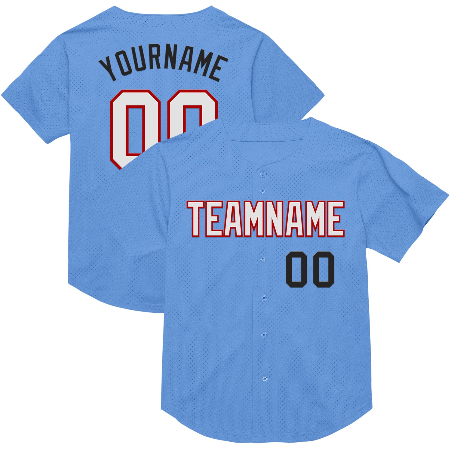 Custom Light Blue Red-Black Mesh Authentic Throwback Baseball Jersey