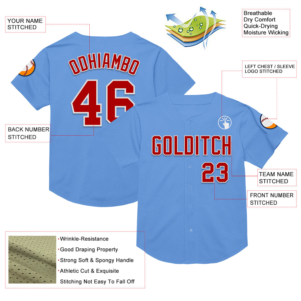 Custom Light Blue Red-White Mesh Authentic Throwback Baseball Jersey