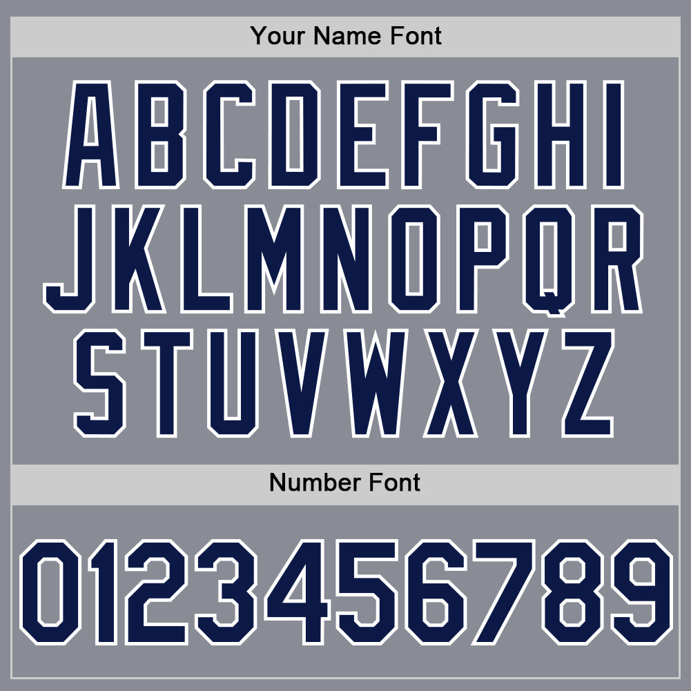 Custom Gray Navy-White Bomber Full-Snap Varsity Letterman Hoodie Jacket