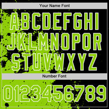 • Laden Sie das Bild in den Galerie-Viewer, Custom Black Neon Green-White Abstract Splash Grunge Art 3D Pattern Design Bomber Full-Snap Varsity Letterman Hoodie Jacket