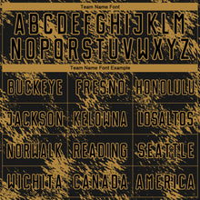 • Laden Sie das Bild in den Galerie-Viewer, Custom Black Old Gold Abstract Grunge Art Sublimation Soccer Uniform Jersey