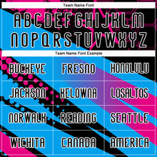 • Laden Sie das Bild in den Galerie-Viewer, Custom Black Sky Blue-Pink Geometric Shape And Splash Sublimation Volleyball Uniform Jersey