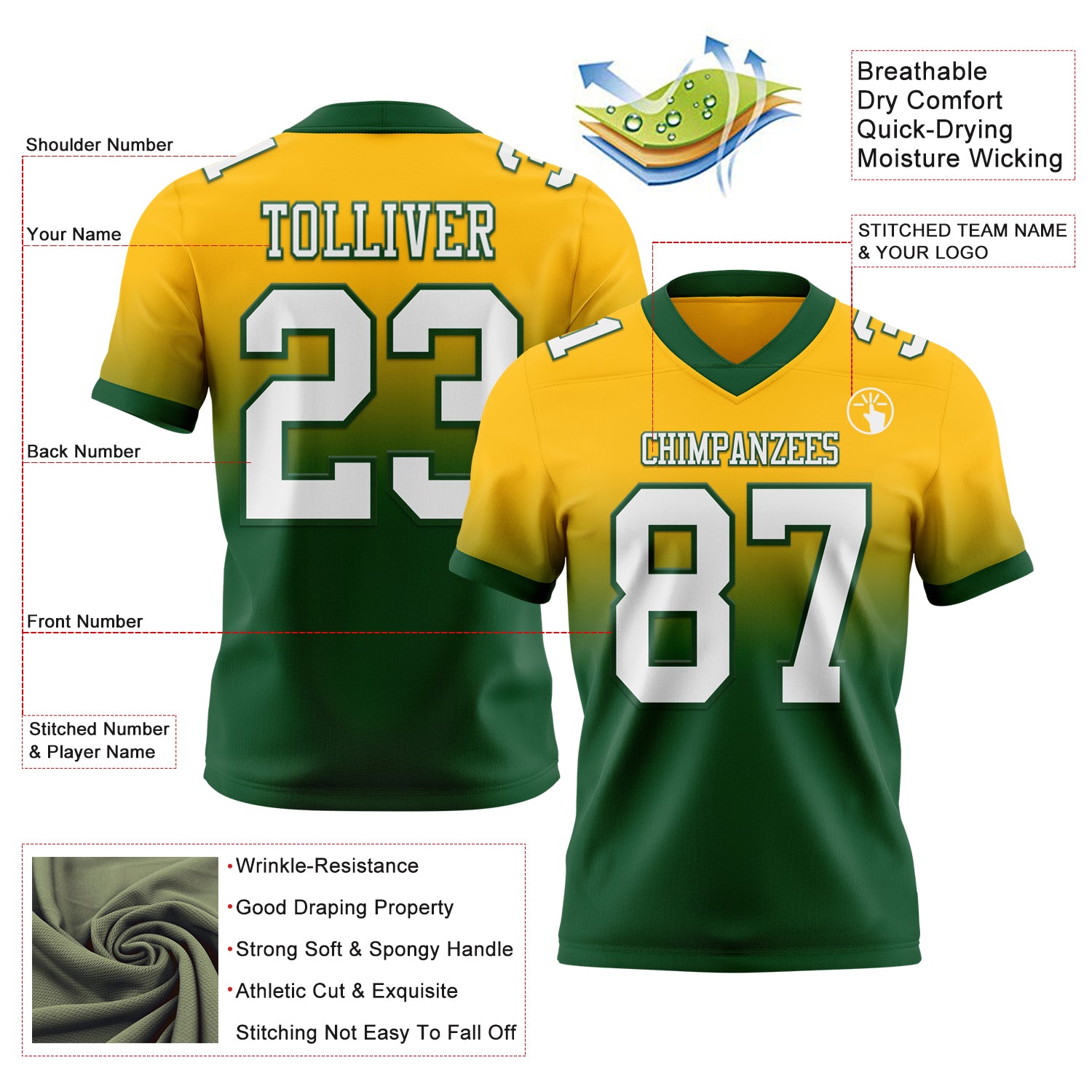 Custom Gold White-Green Authentic Fade Fashion Football Jersey