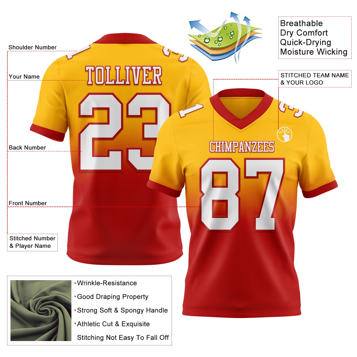 Custom Gold White-Red Authentic Fade Fashion Football Jersey