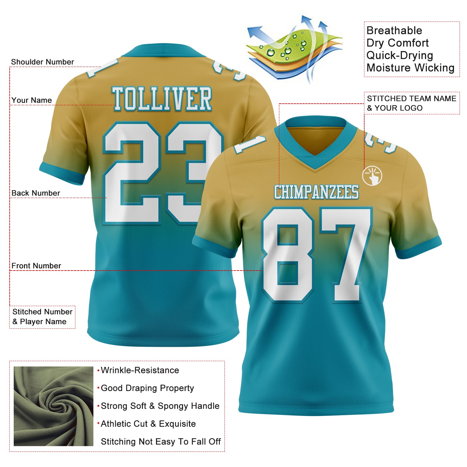 Custom Old Gold White-Teal Authentic Fade Fashion Football Jersey