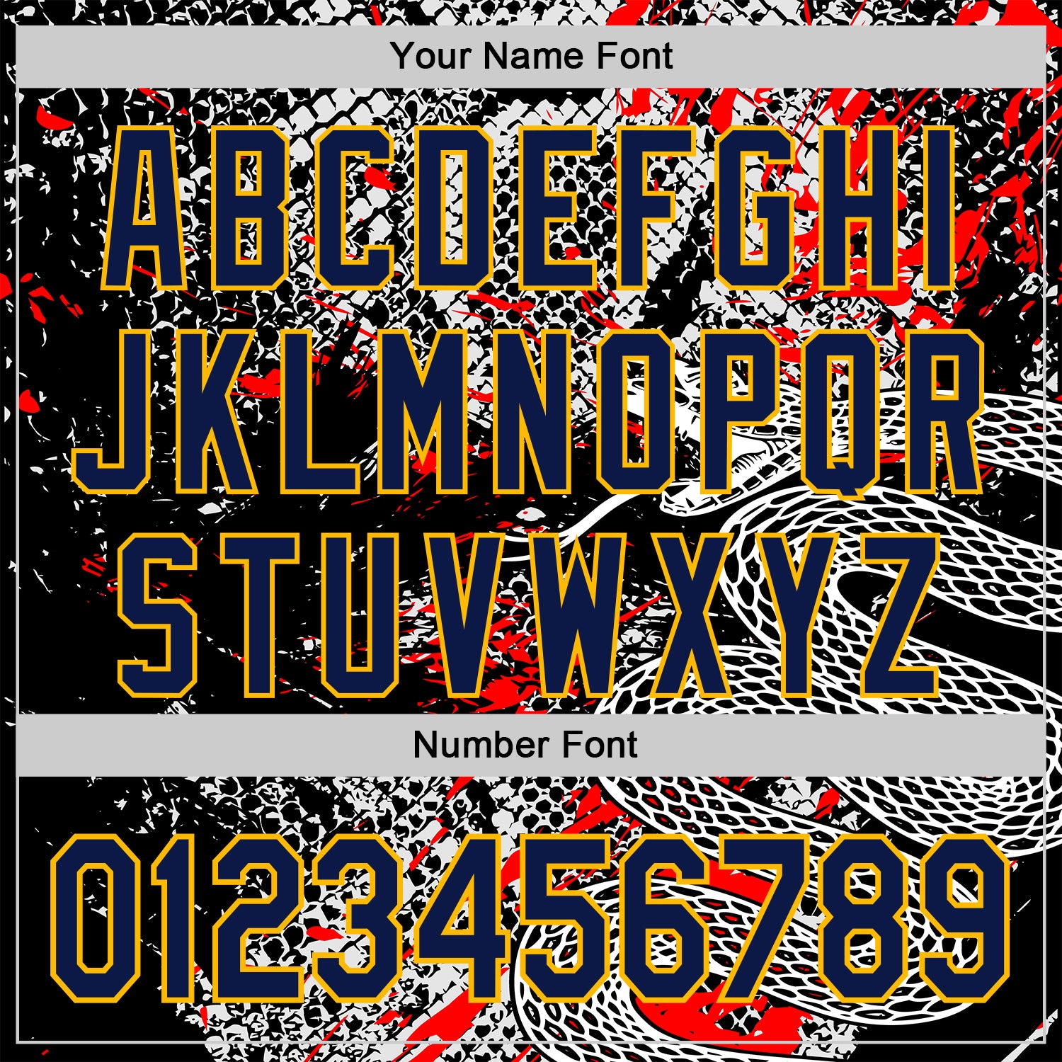 • Laden Sie das Bild in den Galerie-Viewer, Custom Stitched White Navy Black Red-Gold 3D Pattern Design Snake Skin Print Sportswear Pullover Sweatshirt Hoodie
