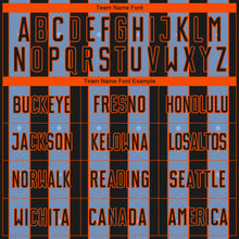 • Laden Sie das Bild in den Galerie-Viewer, Custom Black Light Blue-Orange Pinstripe Line Sports Sublimation Soccer Uniform Jersey