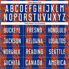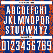 • Laden Sie das Bild in den Galerie-Viewer, Custom Royal White-Orange Abstract Shape Sublimation Soccer Uniform Jersey