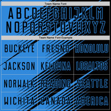 • Laden Sie das Bild in den Galerie-Viewer, Custom Black Powder Blue Line Sublimation Soccer Uniform Jersey