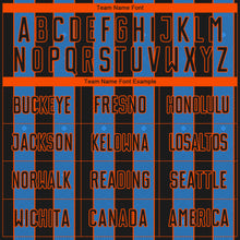 • Laden Sie das Bild in den Galerie-Viewer, Custom Black Powder Blue-Orange Pinstripe Line Sports Sublimation Soccer Uniform Jersey