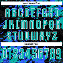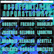 • Laden Sie das Bild in den Galerie-Viewer, Custom Black Aqua Royal-White Fluid Art Splash Sublimation Soccer Uniform Jersey