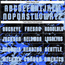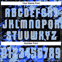 • Laden Sie das Bild in den Galerie-Viewer, Custom Black Light Blue Royal-White Fluid Art Splash Sublimation Soccer Uniform Jersey