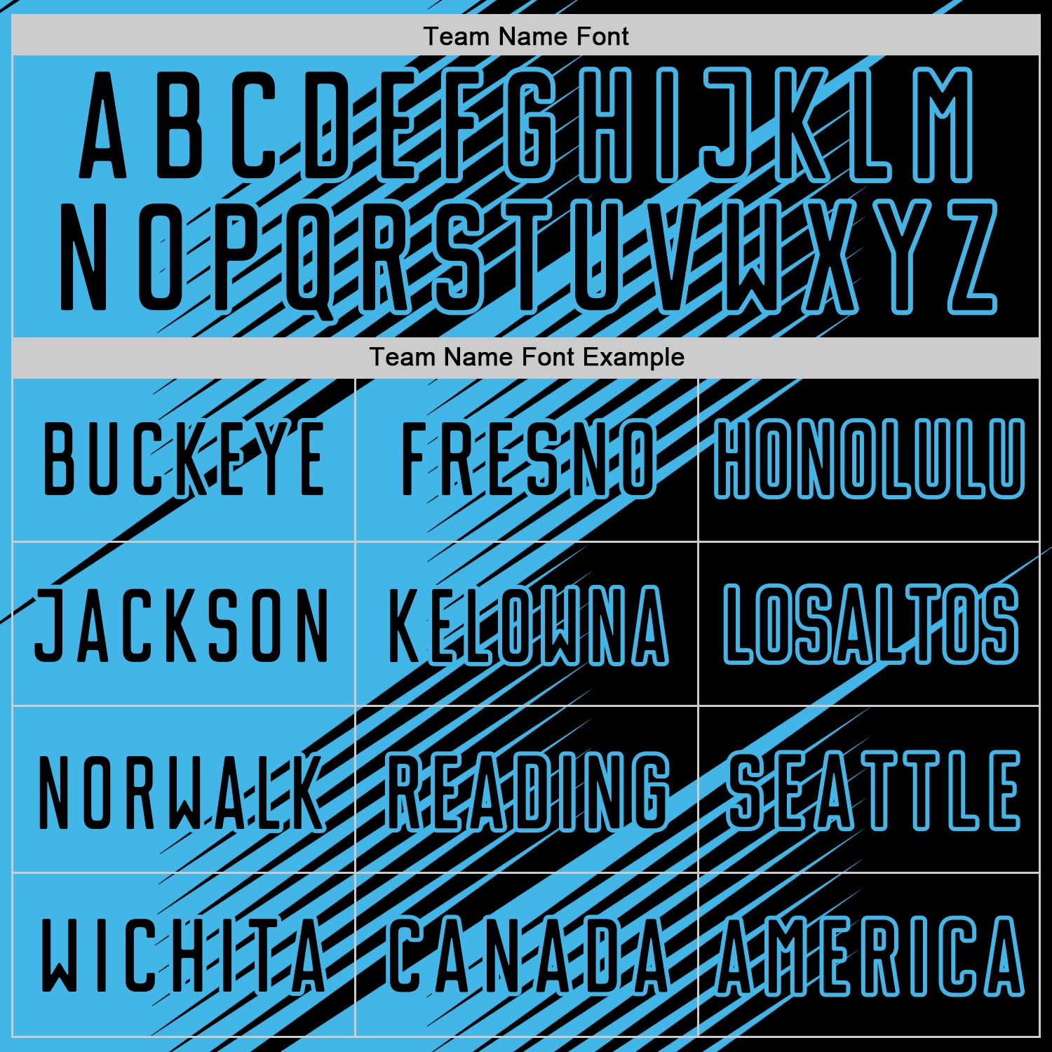 Custom Black Sky Blue Line Sublimation Soccer Uniform Jersey