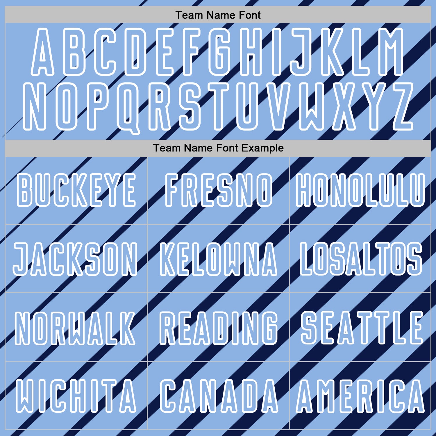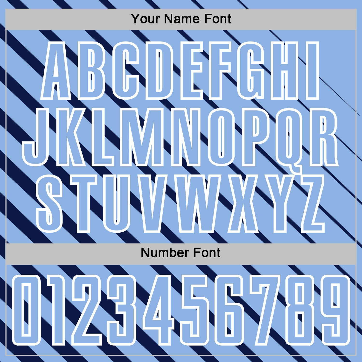 Custom Navy Light Blue-White Lines Sublimation Soccer Uniform Jersey