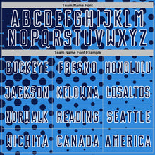 • Laden Sie das Bild in den Galerie-Viewer, Custom Powder Blue Navy-White Modern Polka Dot Sublimation Soccer Uniform Jersey