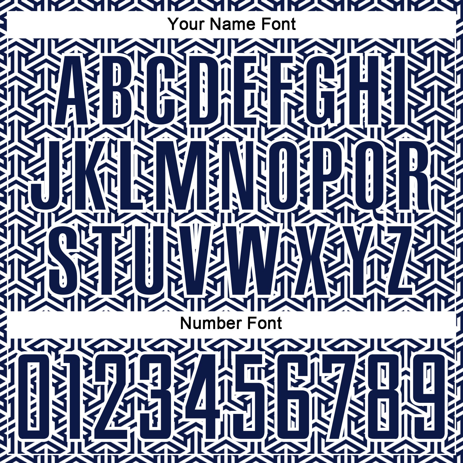Custom Navy White Geometric Arrow Sublimation Soccer Uniform Jersey