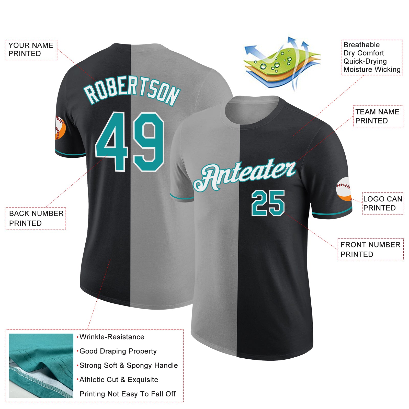 Custom Black Teal-Gray Split Fashion Performance T-Shirt