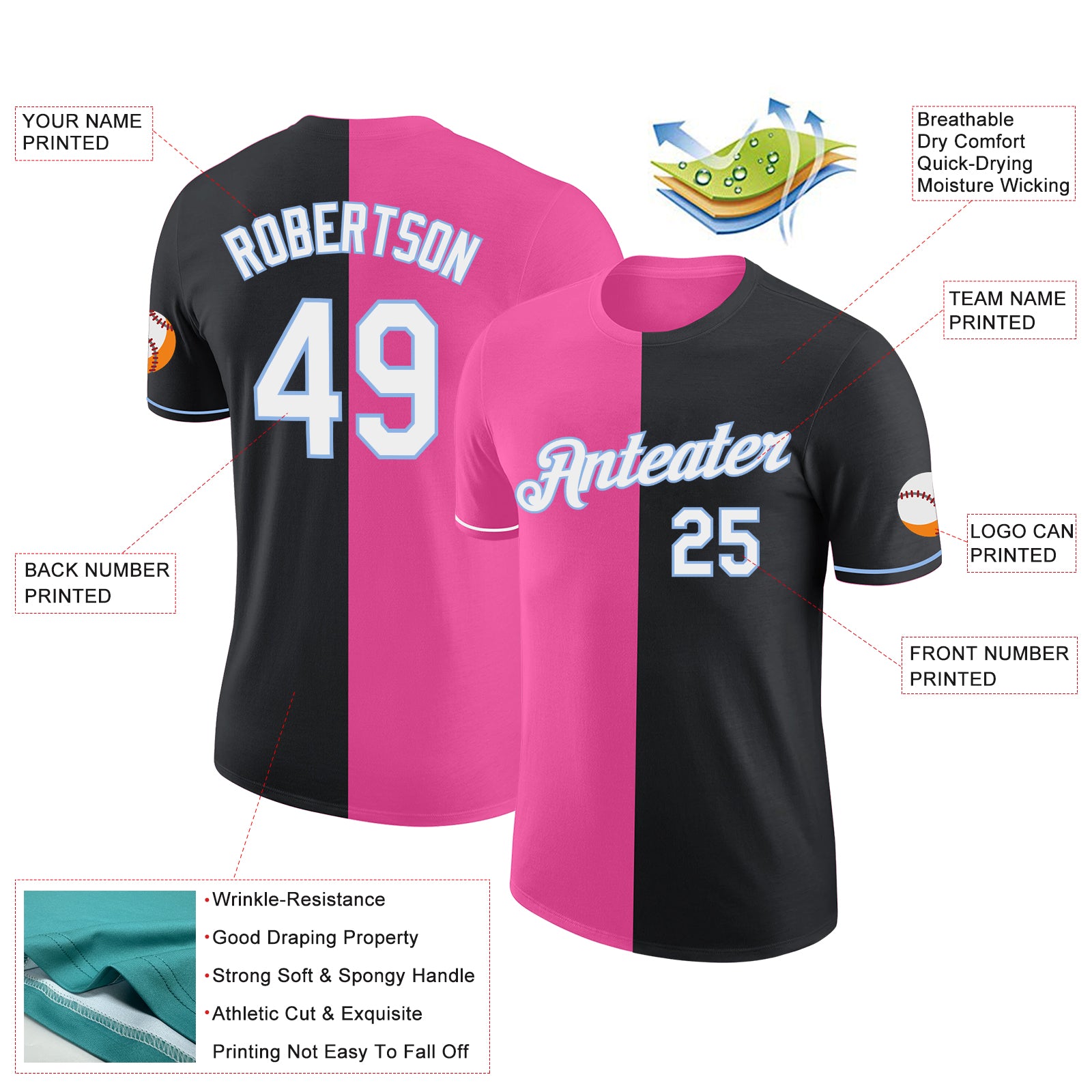 Custom Black Pink-Light Blue Split Fashion Performance T-Shirt