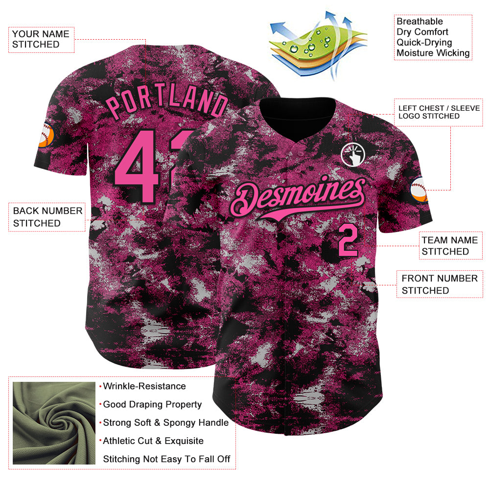 Custom Tie Dye Pink-Black 3D Authentic Baseball Jersey
