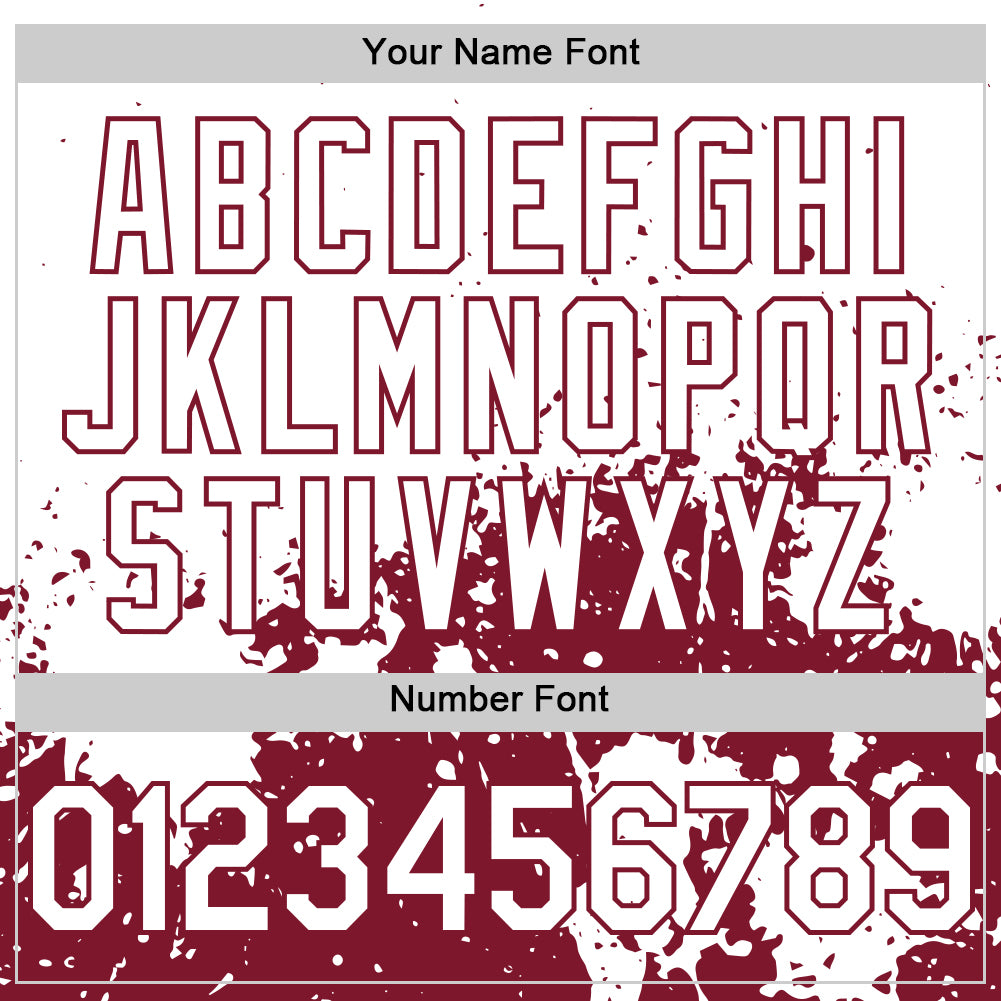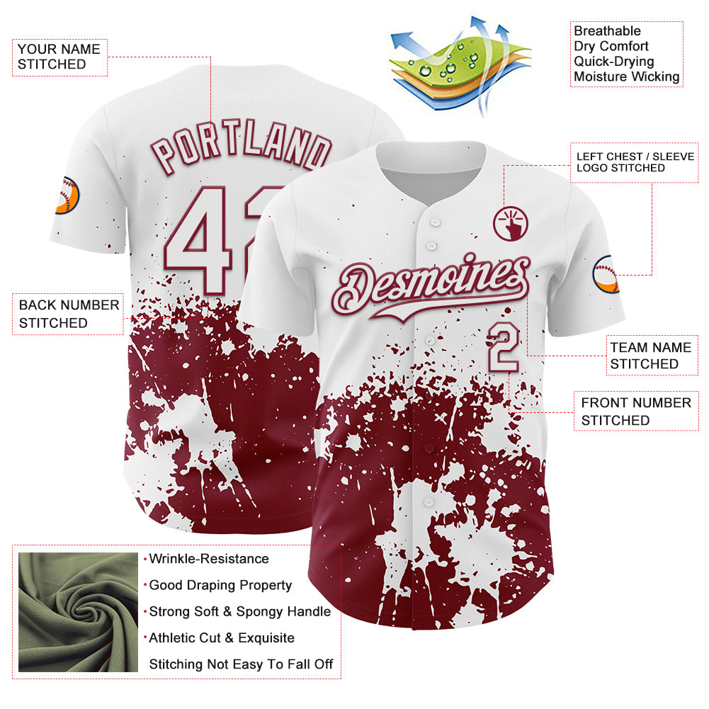 Custom White Crimson Abstract Splatter Grunge Authentic Baseball Jersey