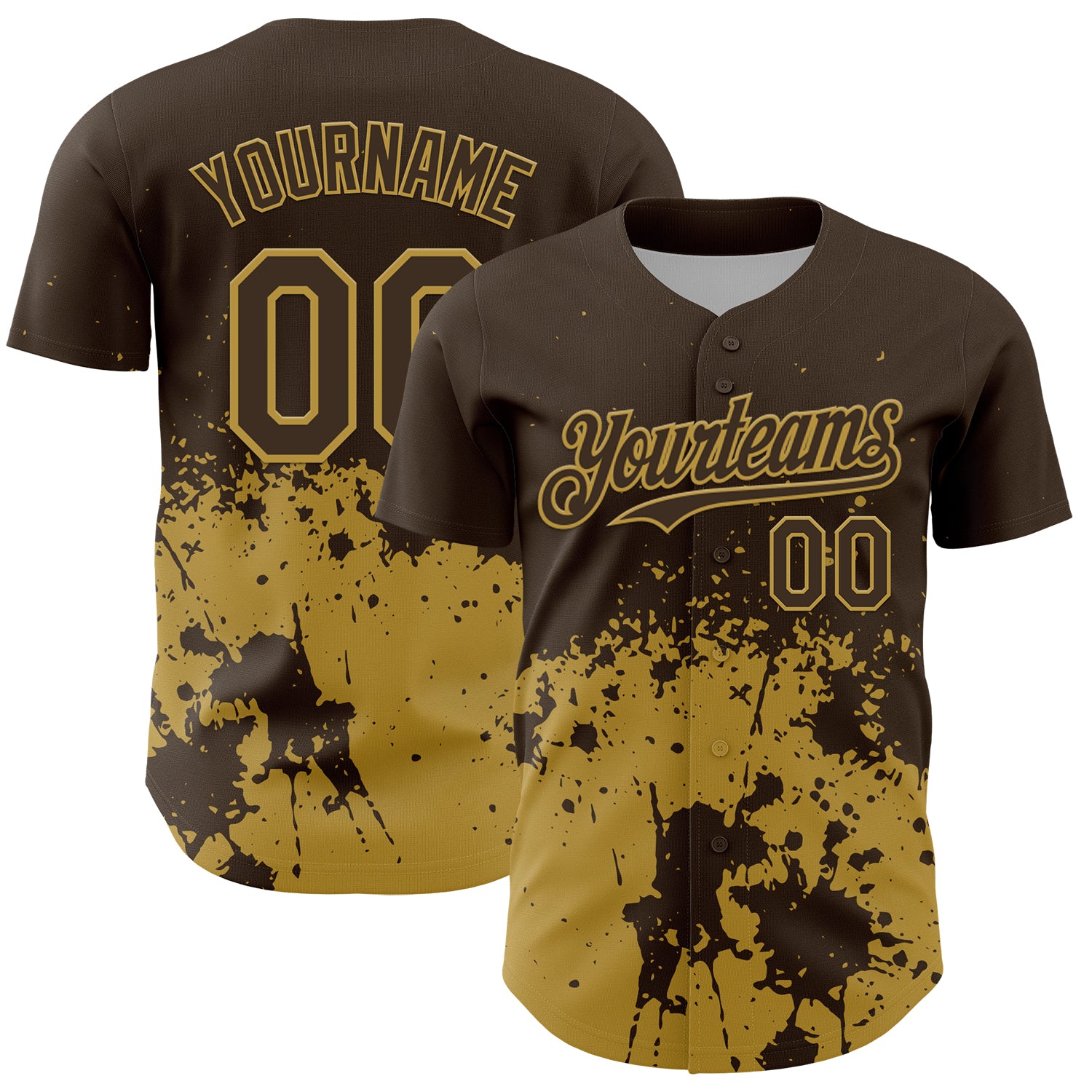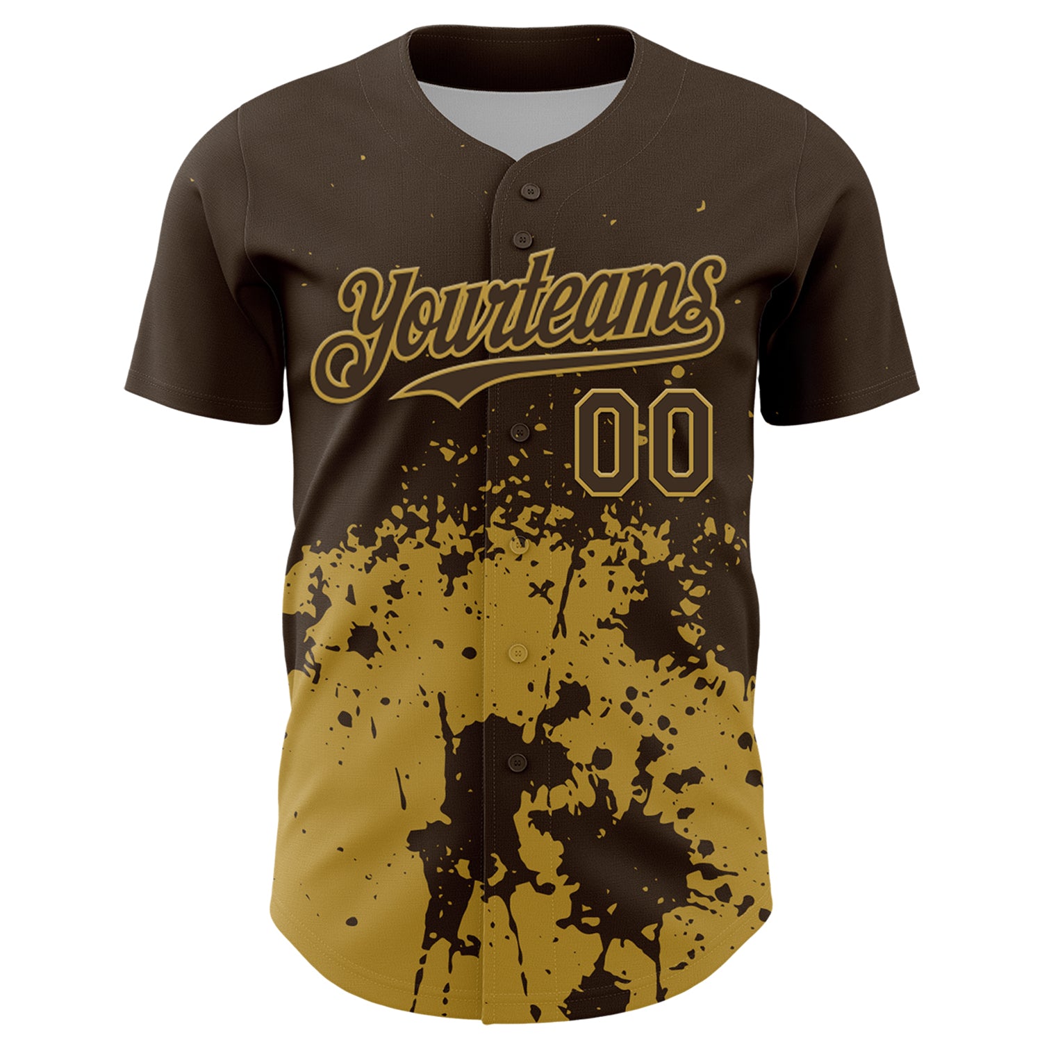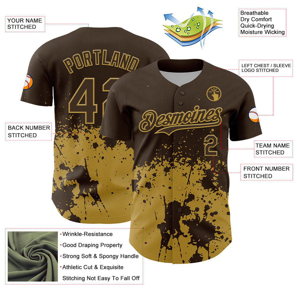 Custom Brown Old Gold Abstract Splatter Grunge Authentic Baseball Jersey