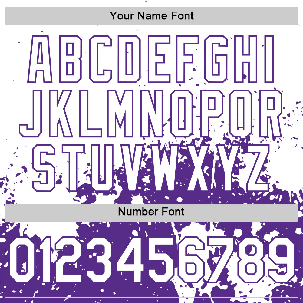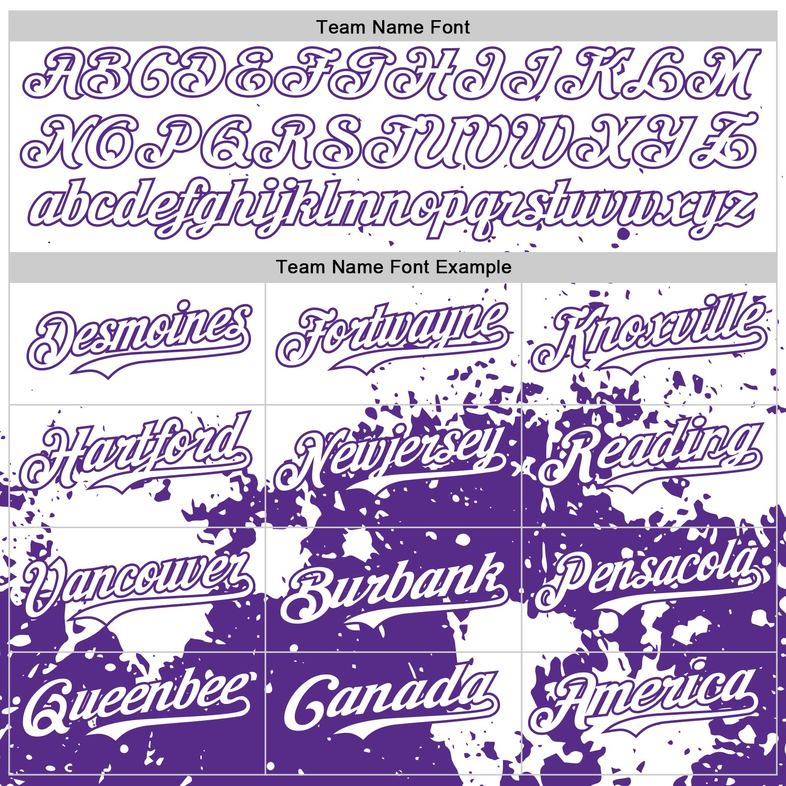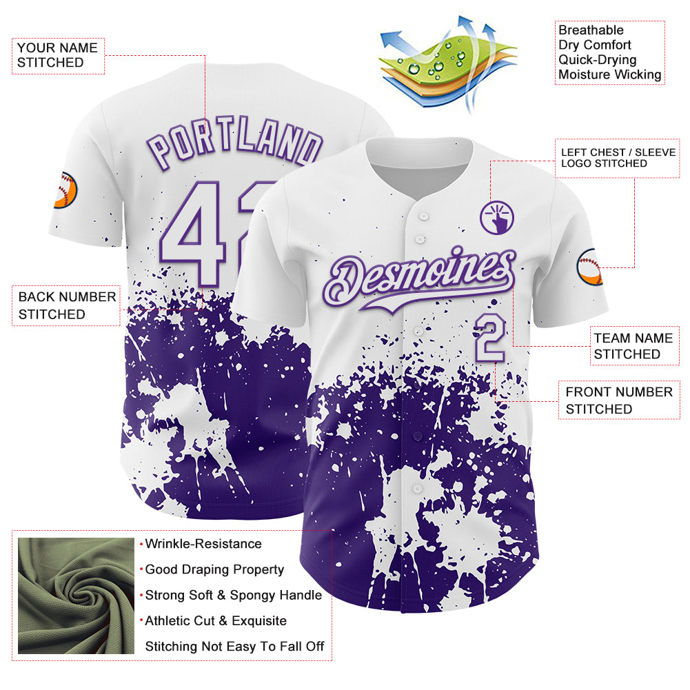 Custom White Purple Abstract Splatter Grunge Authentic Baseball Jersey