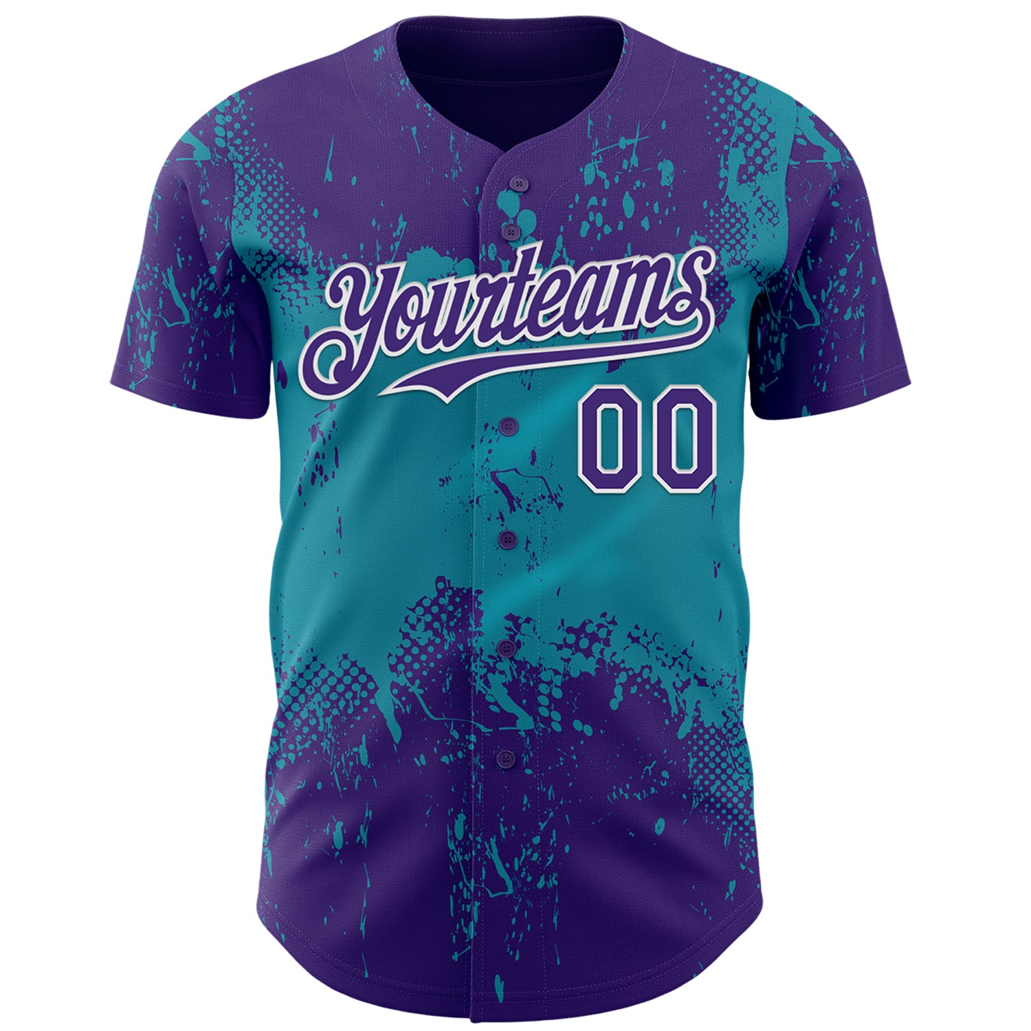 Custom Purple Teal-White 3D Pattern Design Abstract Splatter Grunge Paint Authentic Baseball Jersey
