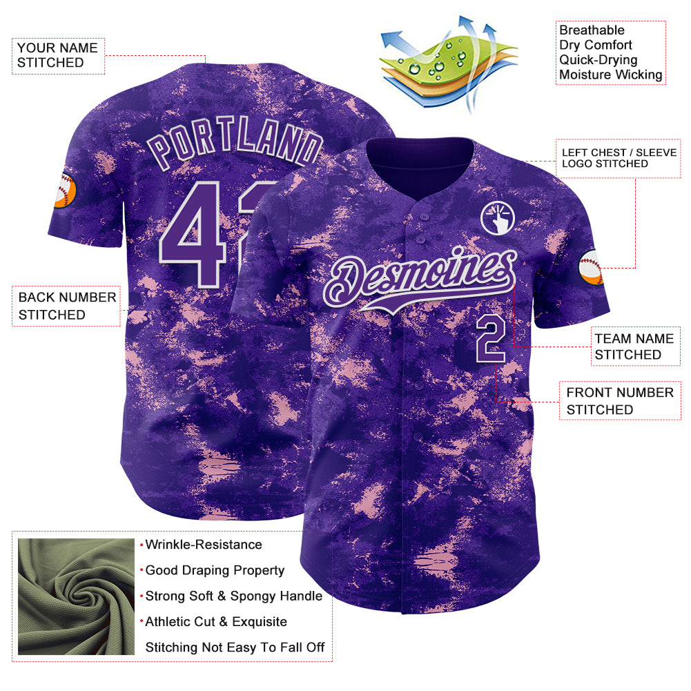 Custom Tie Dye Purple-White 3D Authentic Baseball Jersey