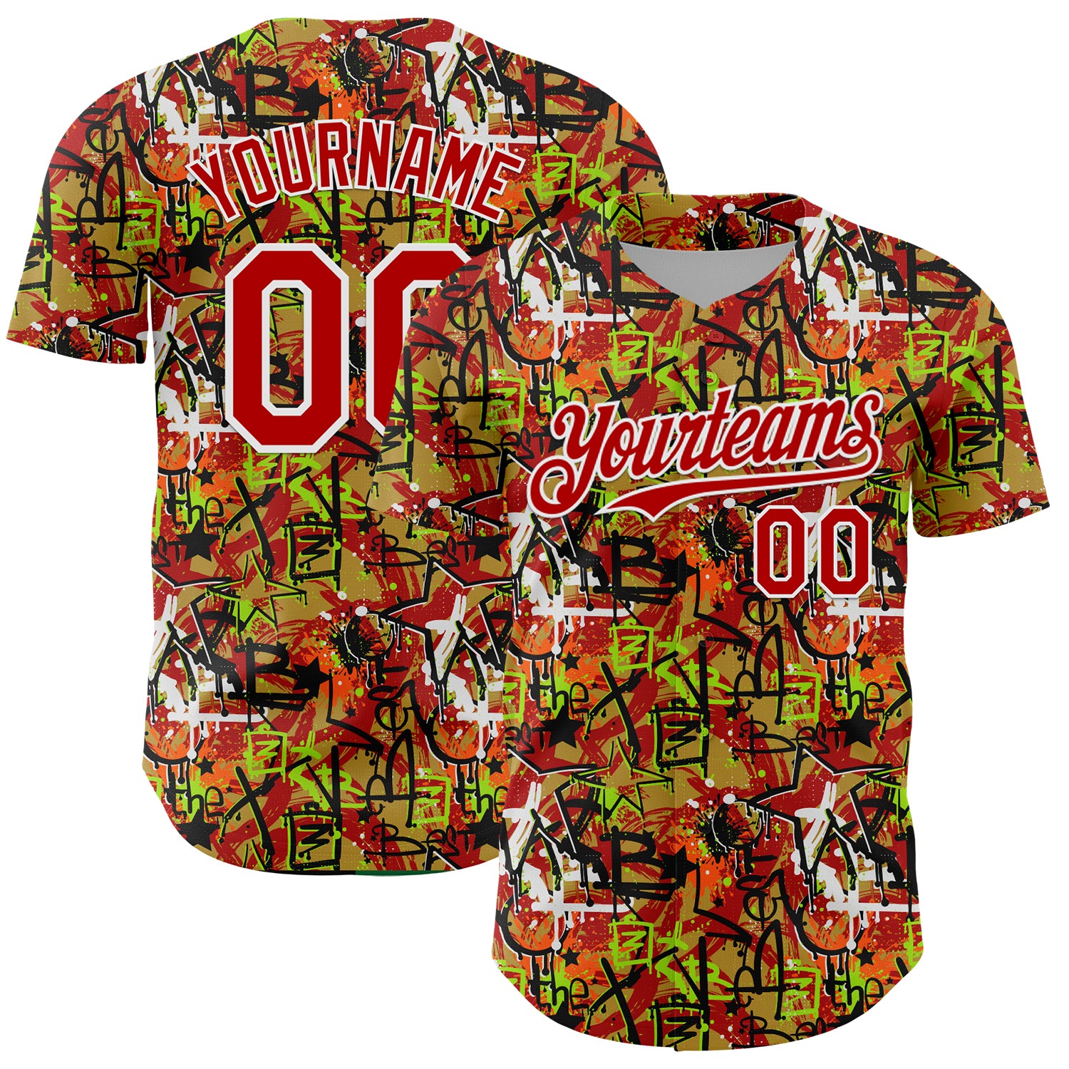 Custom Graffiti Pattern Red-White Splatter Authentic Baseball Jersey