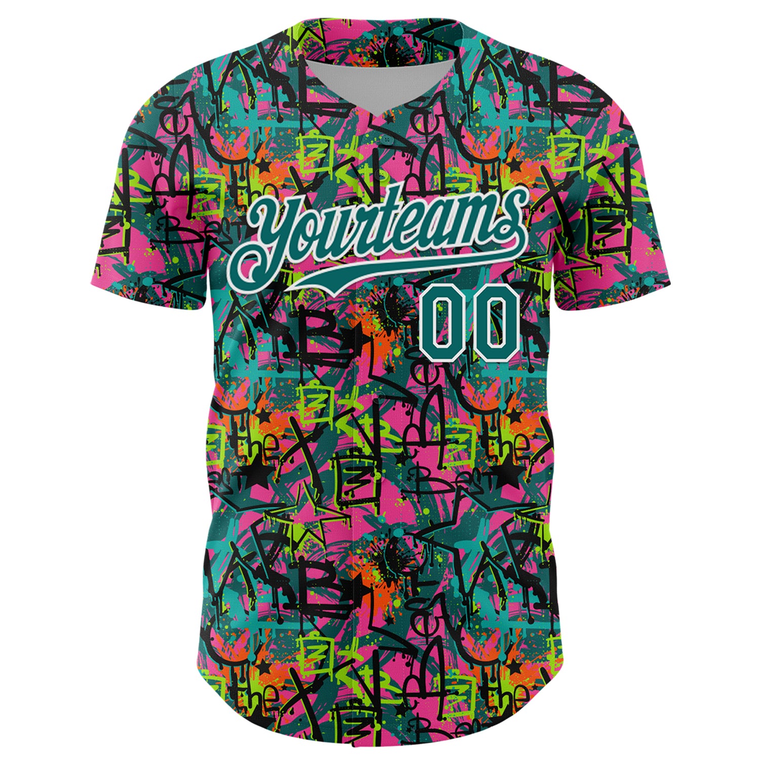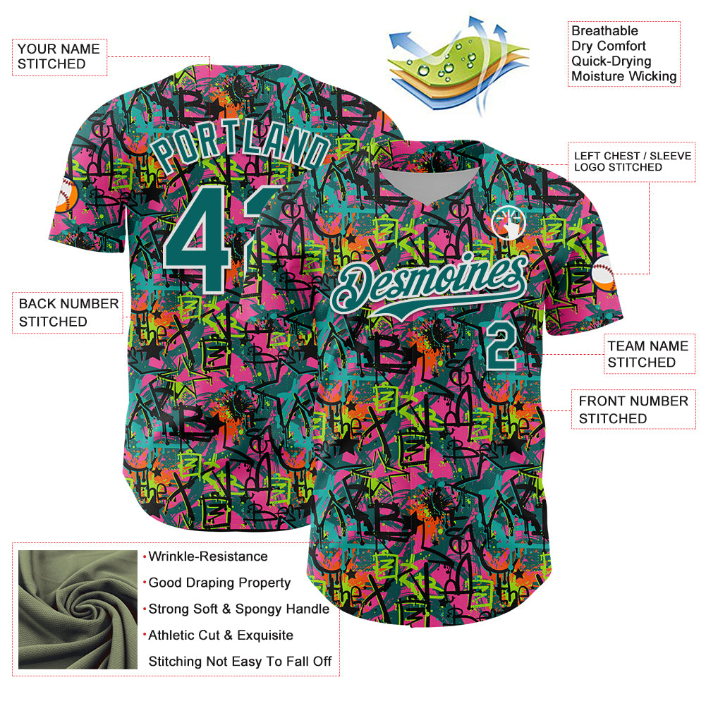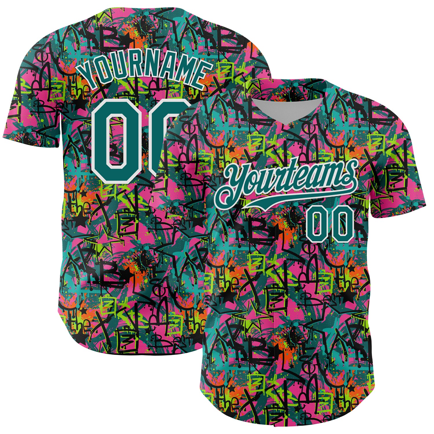 Custom Graffiti Pattern Teal-White Splatter Authentic Baseball Jersey
