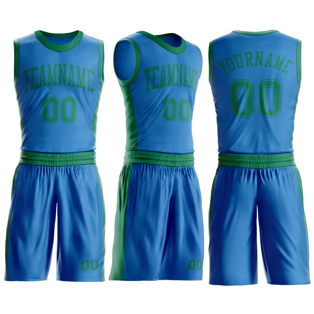 Custom Blue Kelly Green Round Neck Suit Basketball Jersey