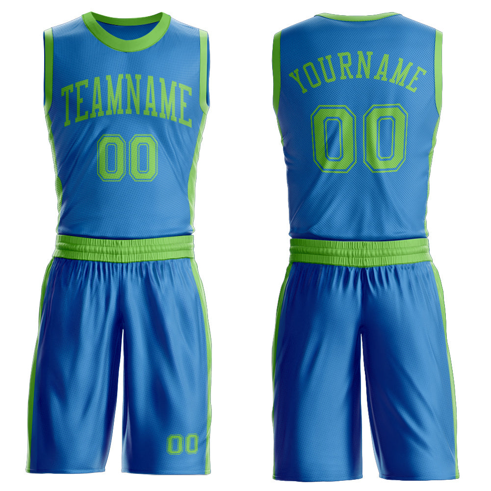 Custom Blue Neon Green Round Neck Suit Basketball Jersey