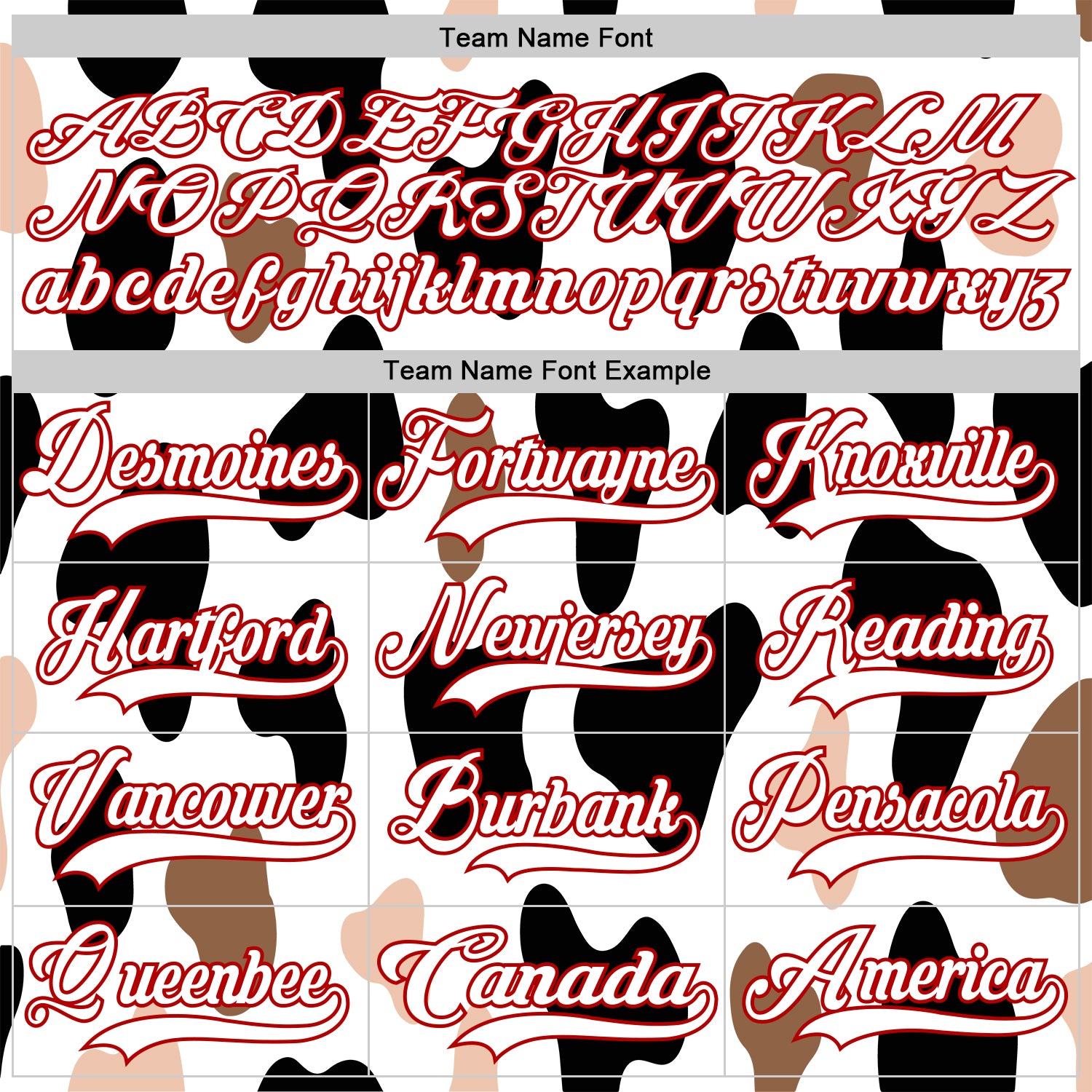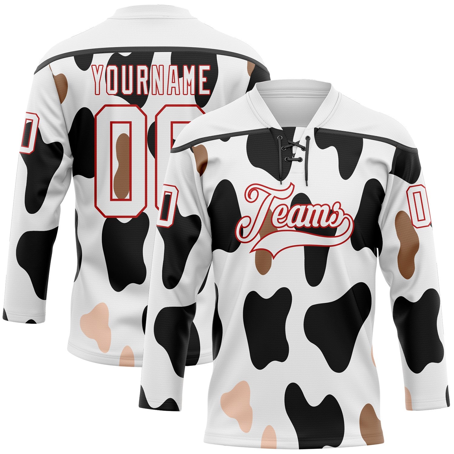 Custom White Black-Red 3D Pattern Cow Print Neon Hockey Lace Neck Jersey