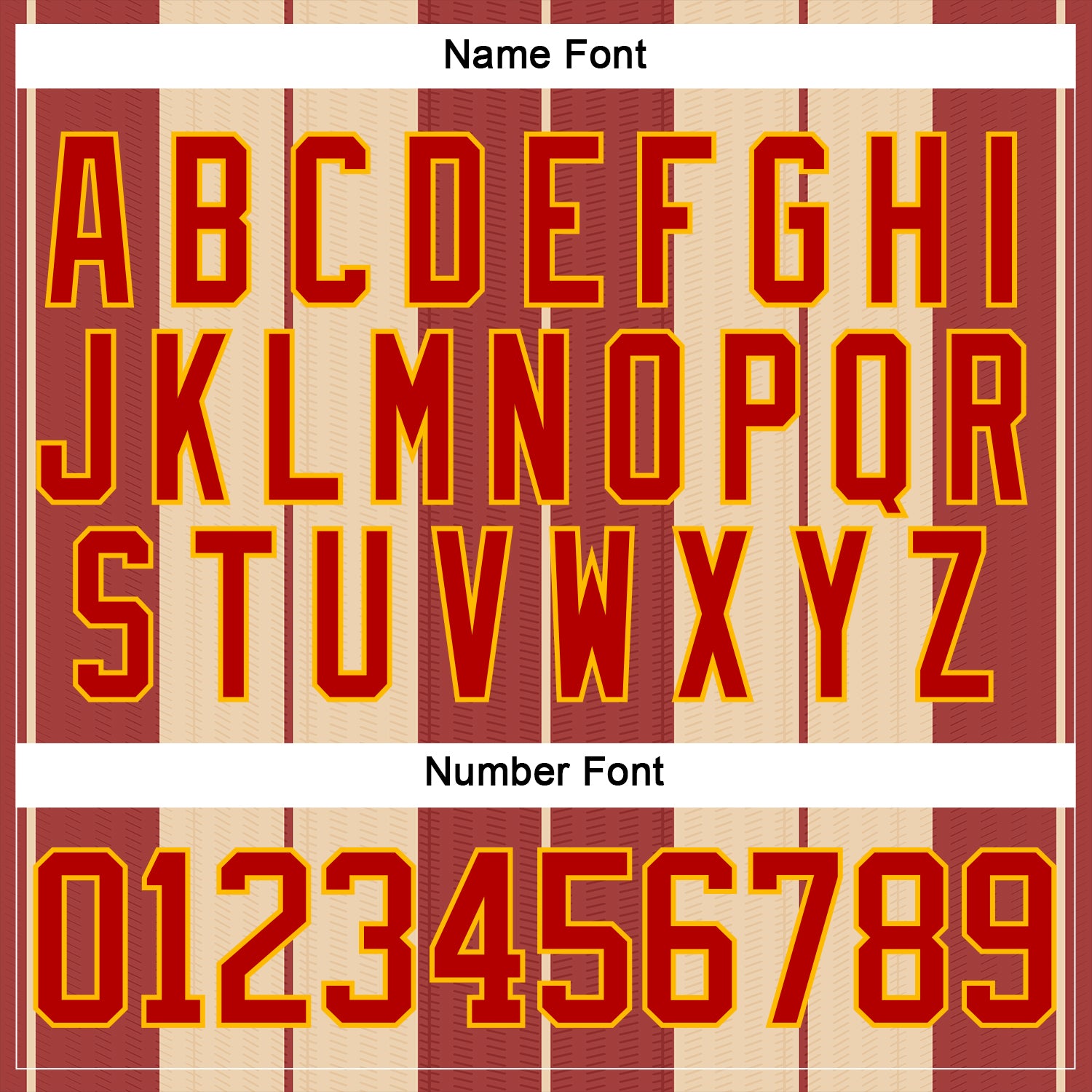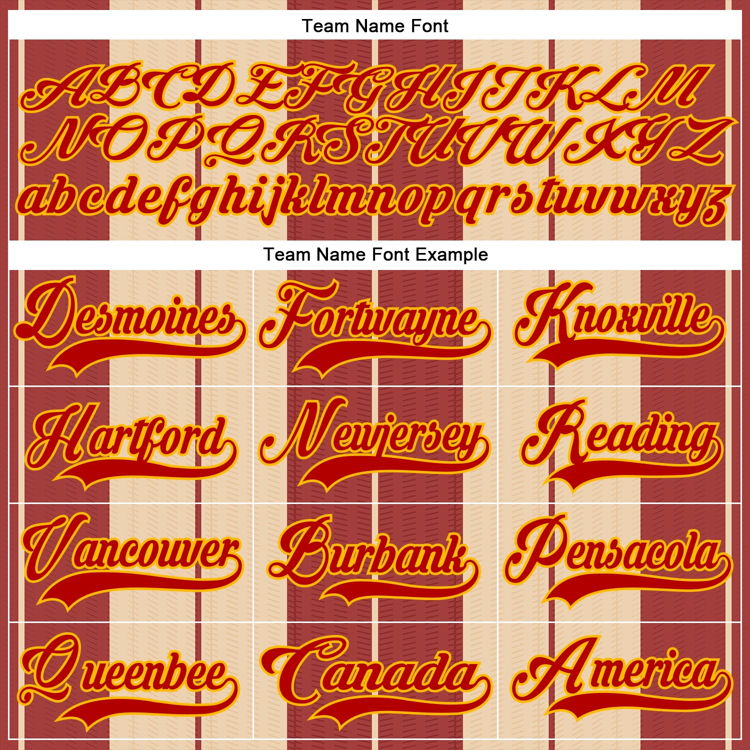 Custom Red Cream Gold-White 3D Pattern Design Stripe Hockey Lace Neck Jersey