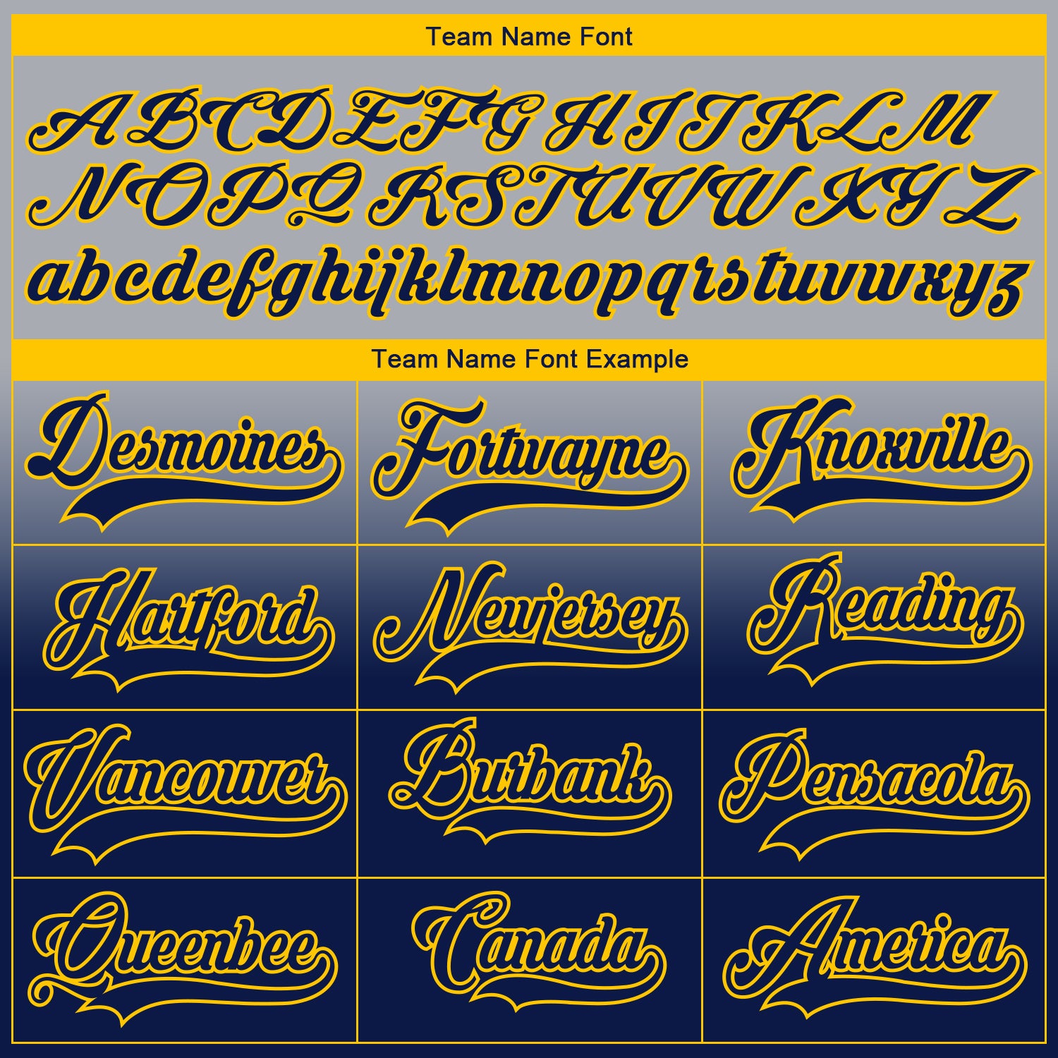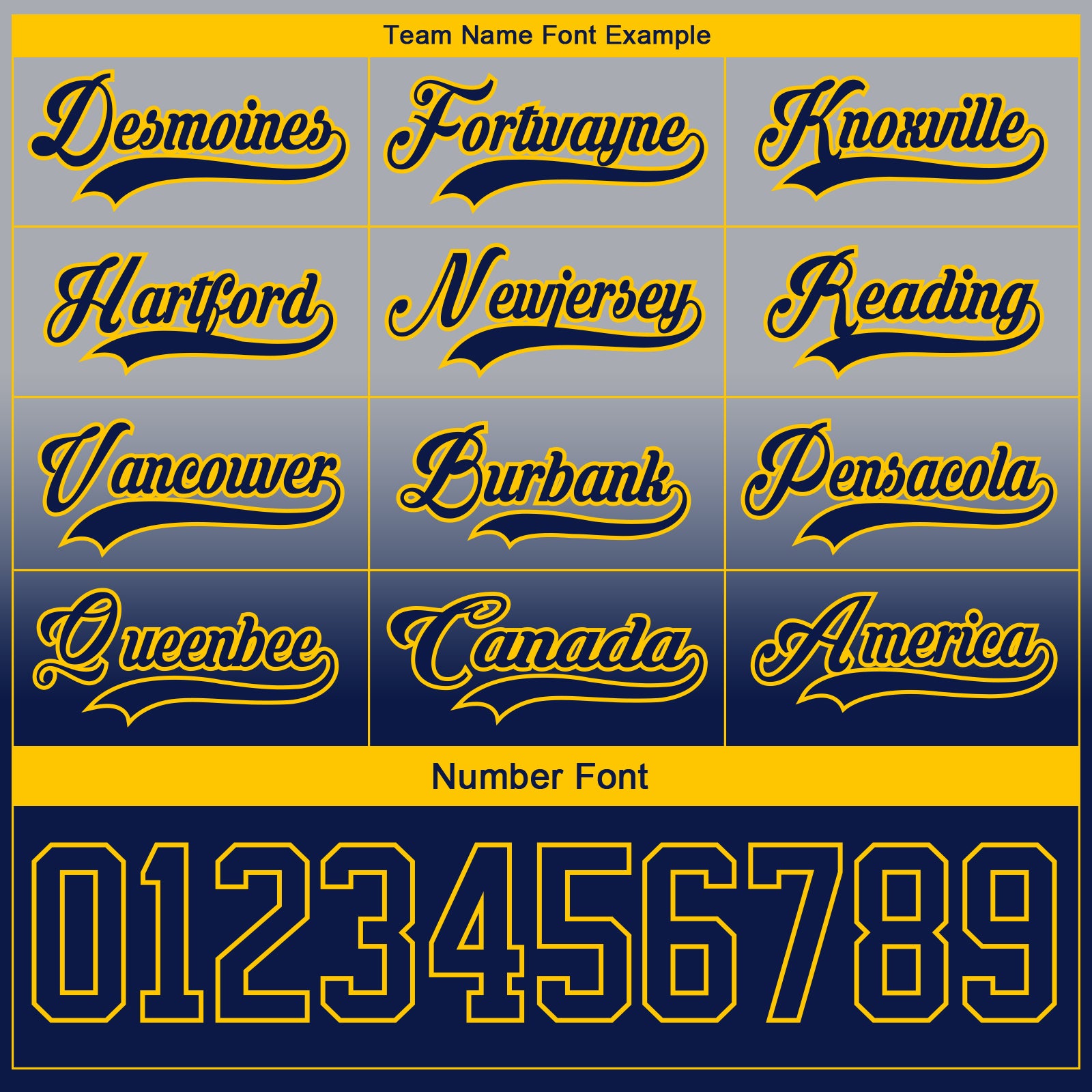 Custom Gray Navy-Gold Fade Fashion Hockey Lace Neck Jersey