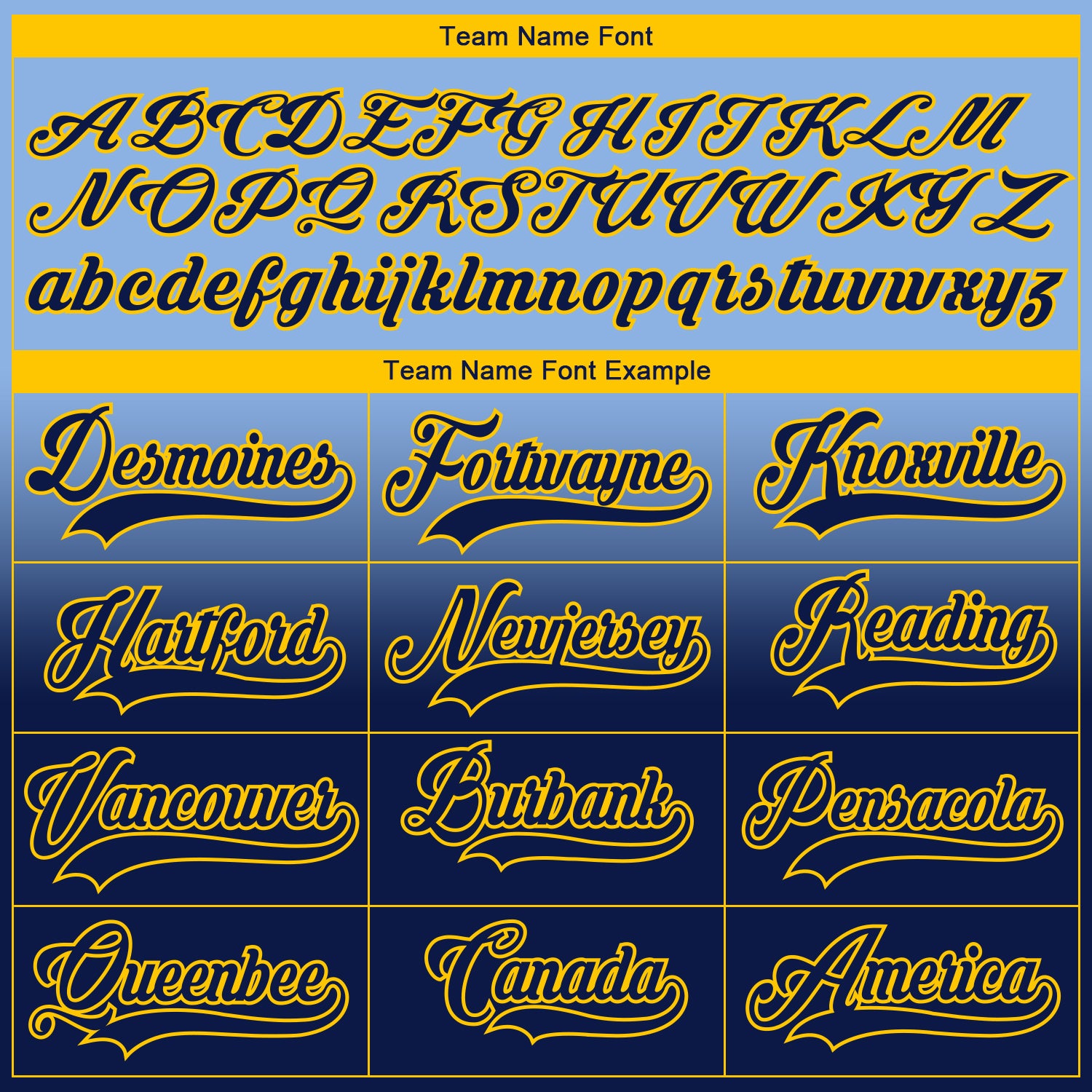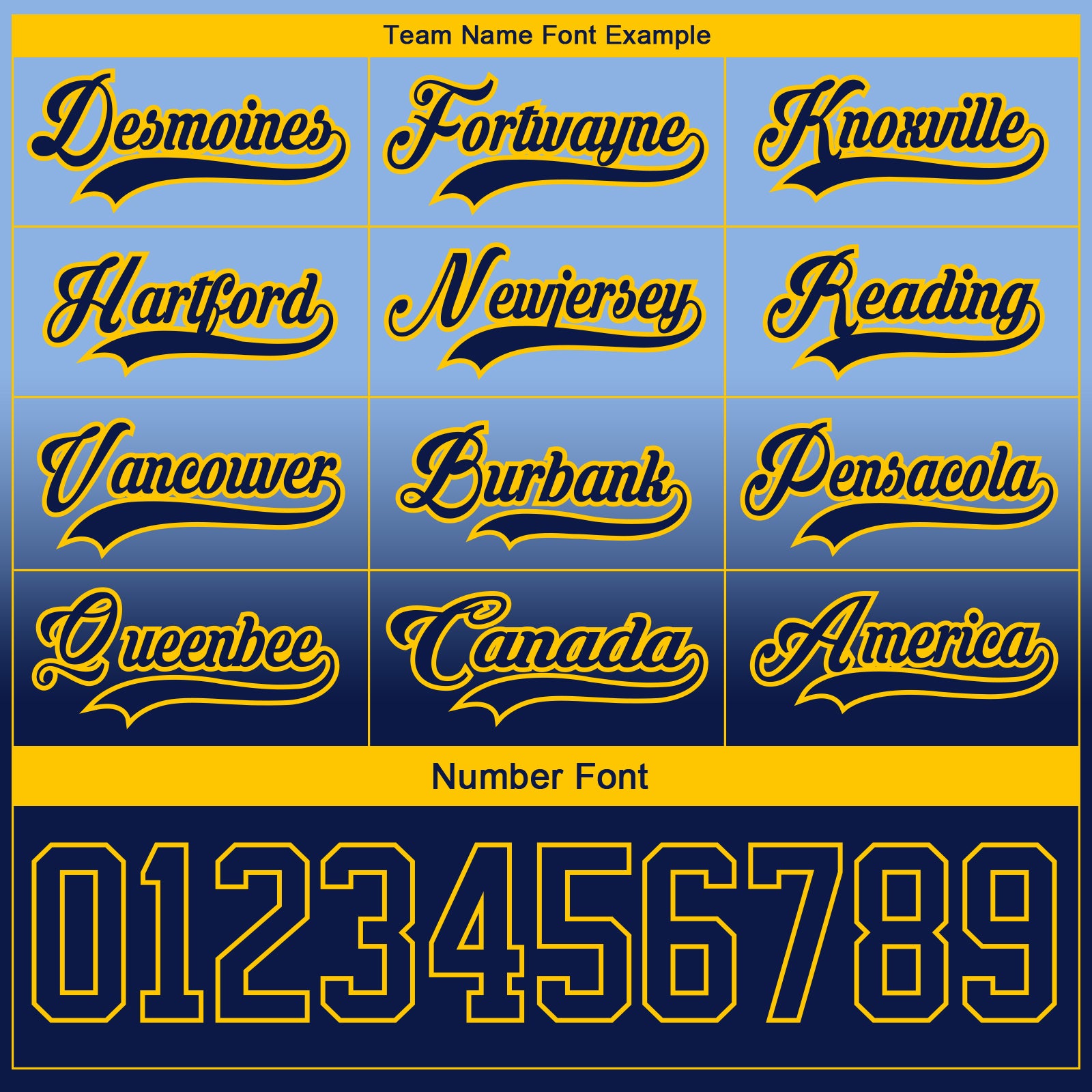 Custom Light Blue Navy-Yellow Fade Fashion Hockey Lace Neck Jersey
