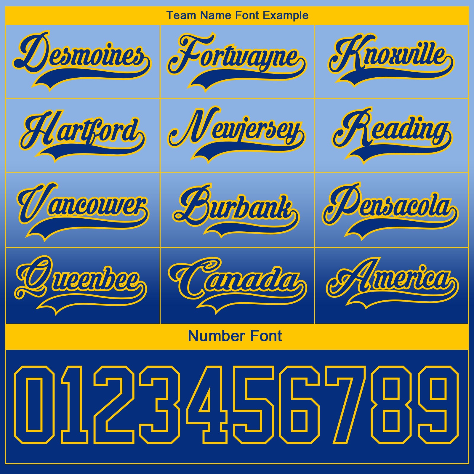 Custom Light Blue Royal-Yellow Fade Fashion Hockey Lace Neck Jersey