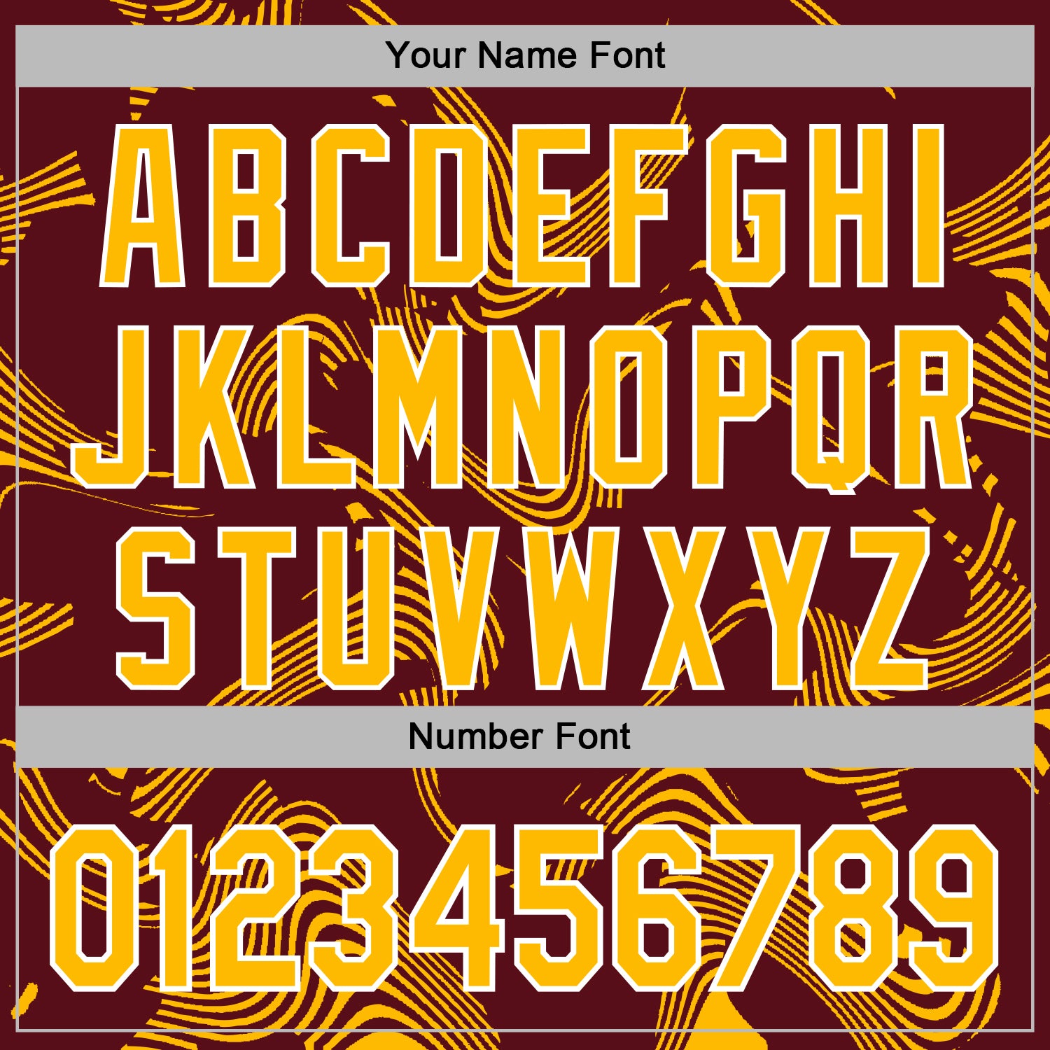 Custom Stitched Burgundy Gold-White 3D Pattern Design Curve Lines Sports Pullover Sweatshirt Hoodie