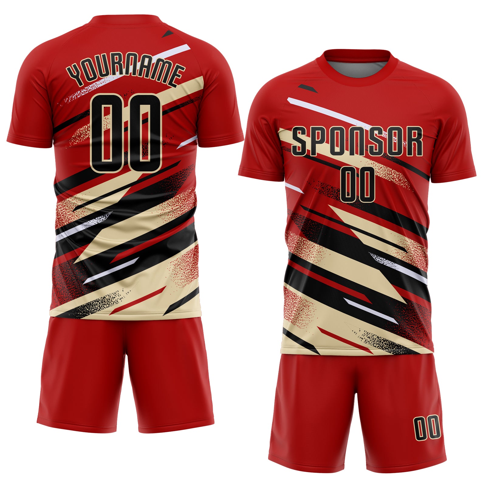 Custom Red Black Cream-White Grunge Stripe And Grainy Sports Sublimation Soccer Uniform Jersey