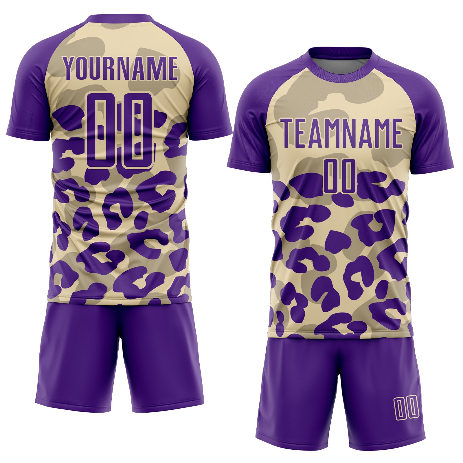 Custom Purple Cream Animal Leopard Print Sports Sublimation Soccer Uniform Jersey