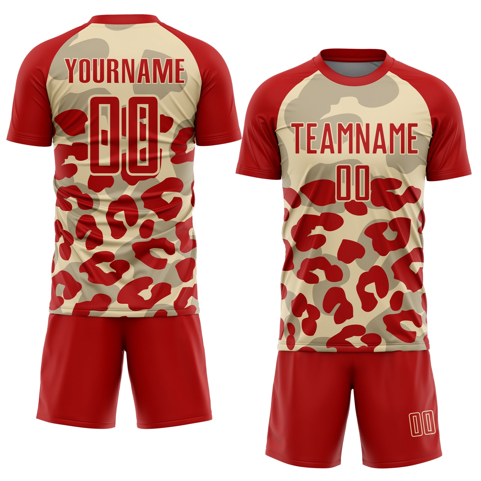 Custom Red Cream Animal Leopard Print Sports Sublimation Soccer Uniform Jersey