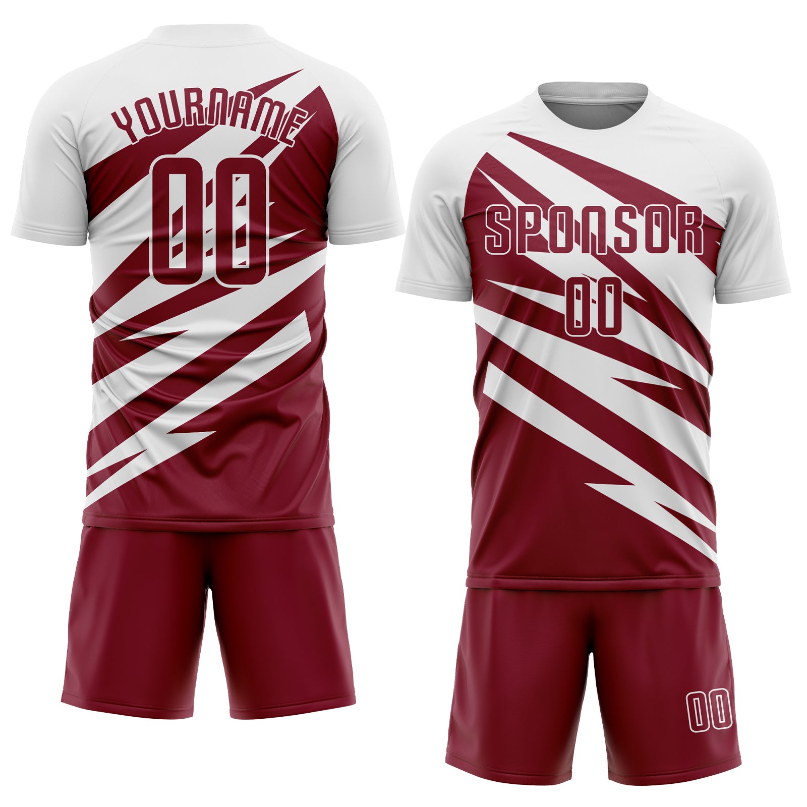 Custom White Crimson Abstract Line Sports Sublimation Soccer Uniform Jersey