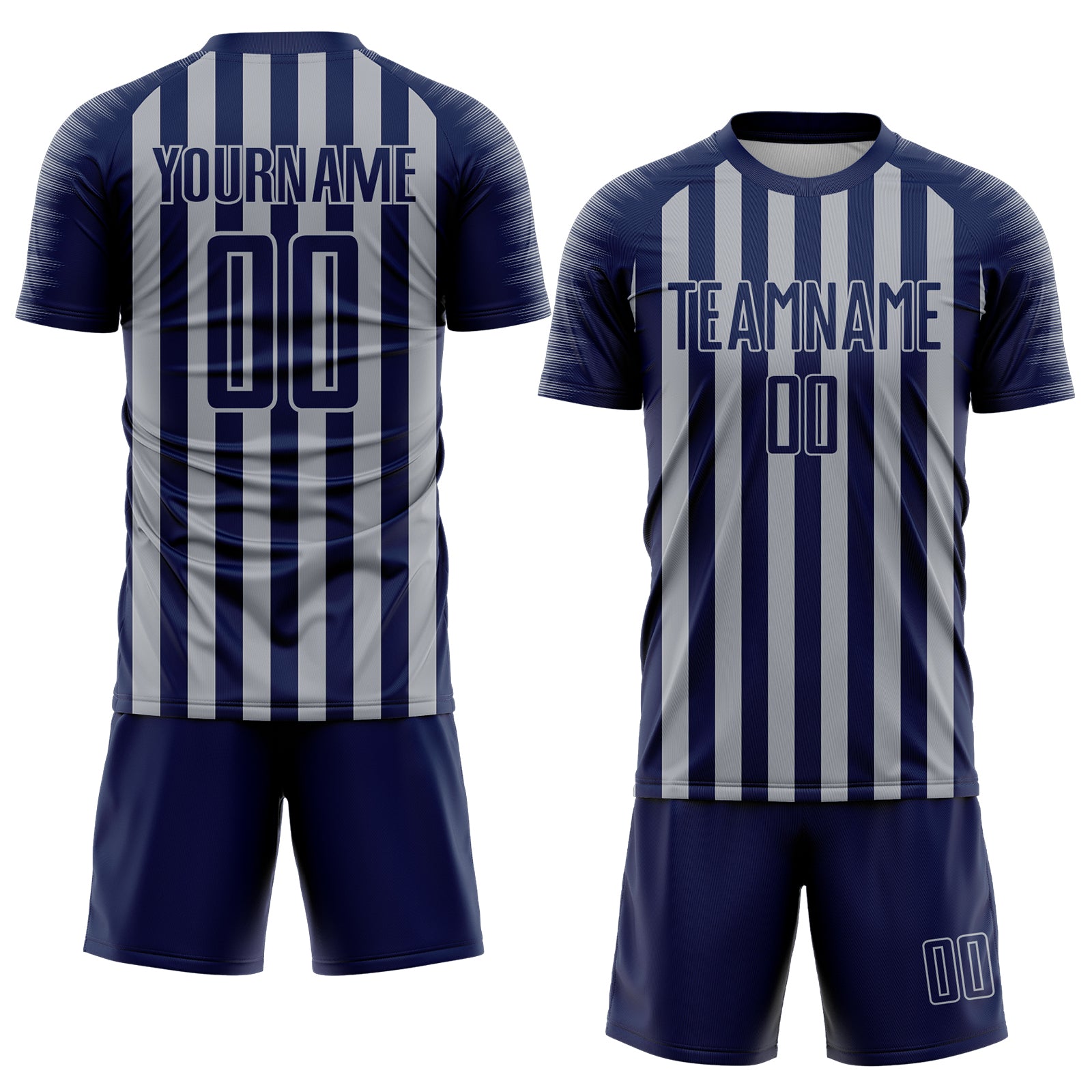 Custom Navy Gray Stripe Sports Sublimation Soccer Uniform Jersey