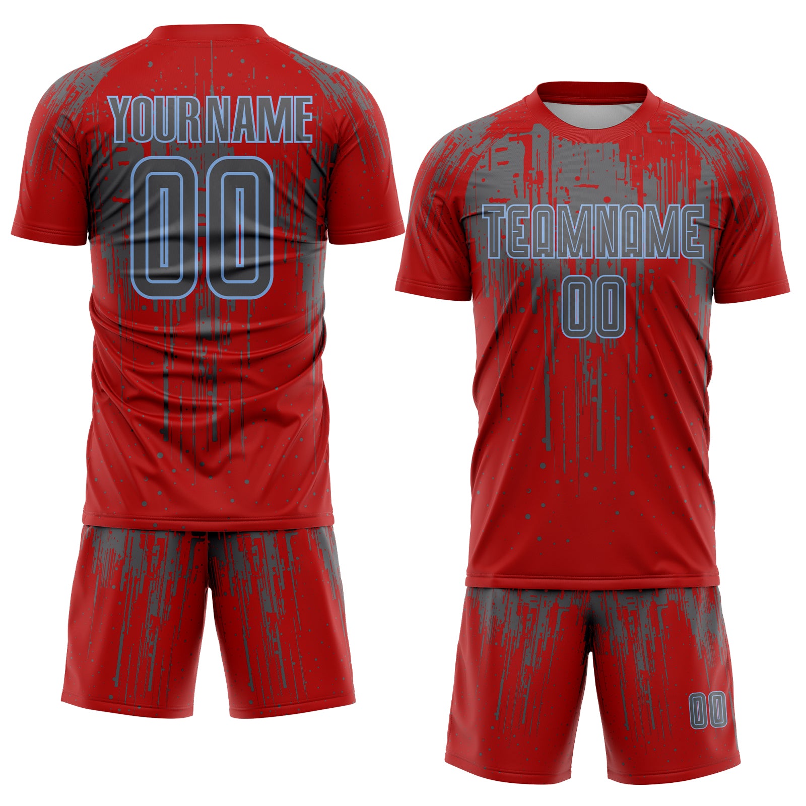 Custom Red Steel Gray-Light Blue Dripping Splatte Pattern Sports Sublimation Soccer Uniform Jersey