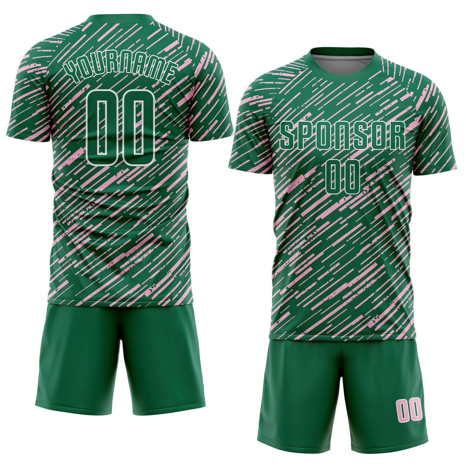 Custom Kelly Green Light Pink-White Line Sports Sublimation Soccer Uniform Jersey